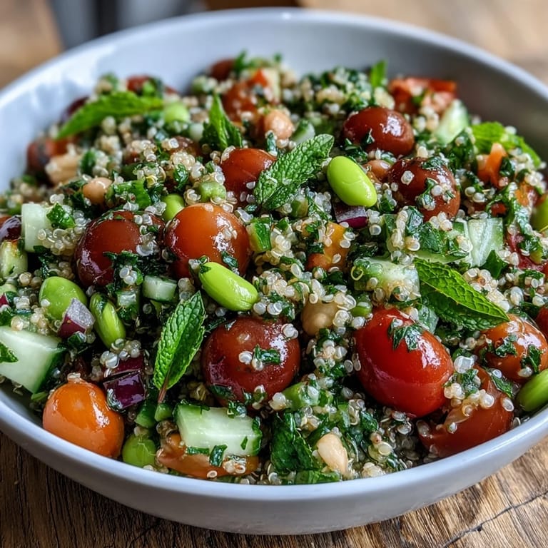 Save Summer hit differently the year I discovered that a salad could actually feel like a meal instead of something you eat before the real food arrives. I was standing in my kitchen on a Tuesday afternoon, staring at a bag of frozen edamame and wondering if I could turn it into something worth getting excited about, and somehow this salad became the answer I didn't know I was looking for. The combination of nutty quinoa, sweet bursts of tomato, and that herbaceous brightness just clicked, and suddenly I was making it twice a week without even thinking about it.