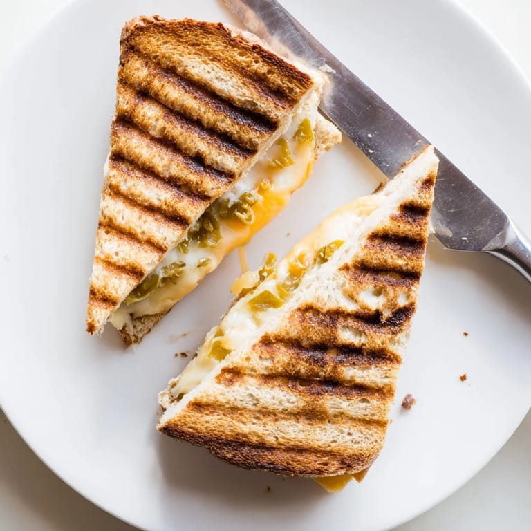 Save The first time I made this spicy grilled cheese, I accidentally used way more jalapeños than I intended. My brother took one bite and his eyes went wide, but then he grabbed two more slices. Now he requests it every time he visits, claiming the heat builds in this perfect way that keeps you coming back for more.