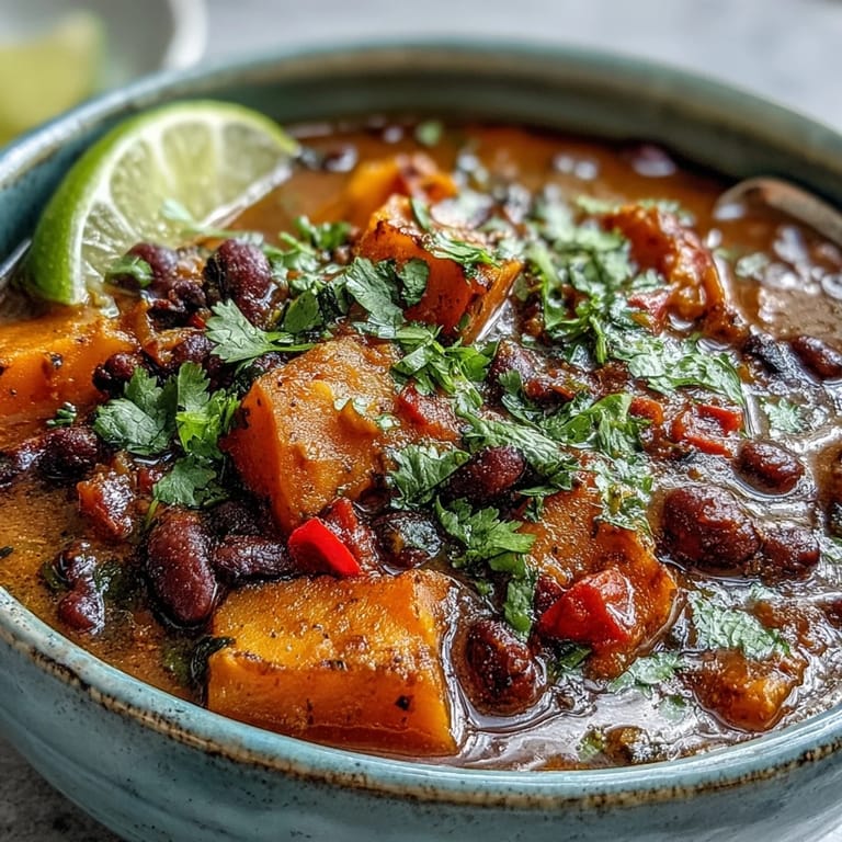 Save A hearty, fiber-rich soup featuring creamy sweet potatoes and protein-packed black beans, simmered with aromatic spices for a warming, gut-friendly meal. This comforting dish brings together the natural sweetness of root vegetables with the earthy depth of legumes, making it a perfect staple for chilly evenings or healthy meal prep.